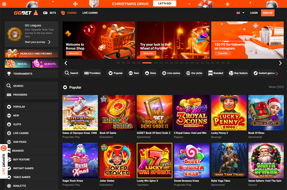GG Bet har over 8000 spill fra 91 utviklere. Porteføljen inkluderer kjente navn som Pragmatic Play, BGaming, NetEnt og Spinomenal. Dessverre er spillutvalget preget av kunstig promoterte titler fra mindre populære leverandører.