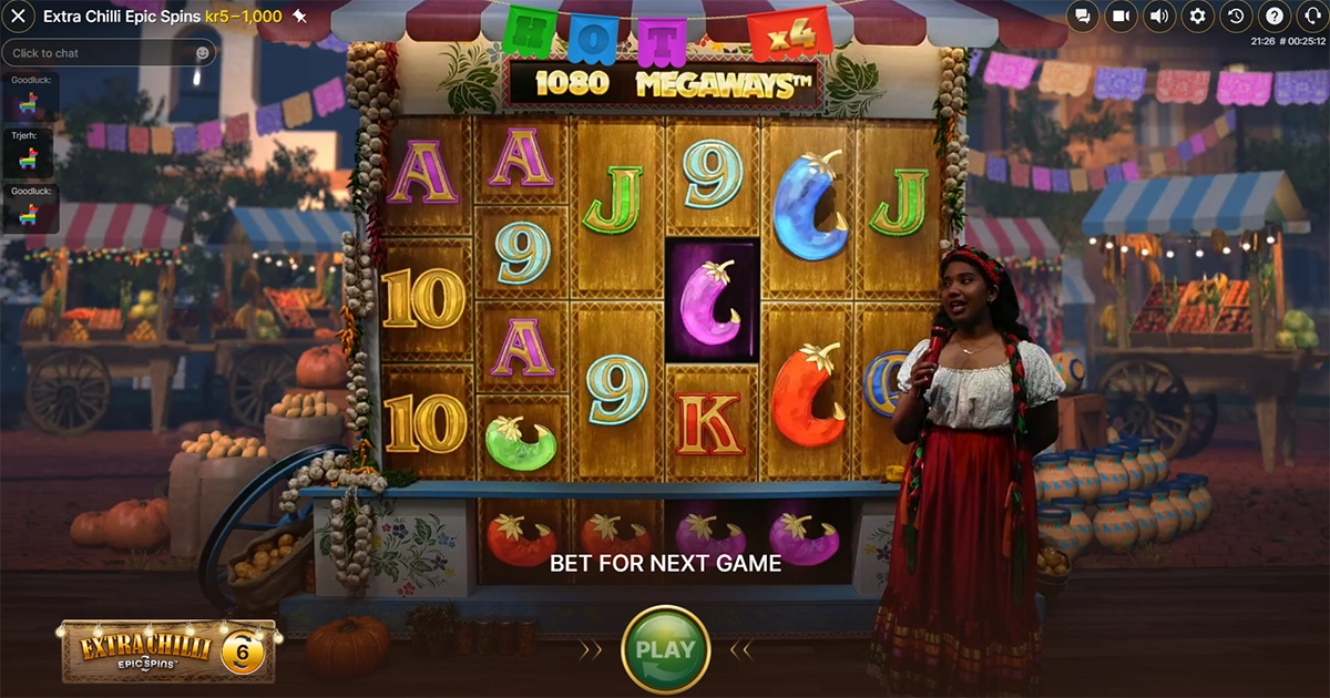 Extra Chilli Epic Spins er en vellykket fusjon mellom spilleautomater og livespill. Med en RTP på 96,74% og maksgevinst på 20 000x tilbyr spillet et solid gevinstpotensial kombinert med engasjerende spillopplevelse.